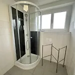 M Lorry Pop Art 3 Chambres Avec Balcons Proche Metz apartment is equipped with a bathroom that features a hairdryer and towels. A shower can also be found.